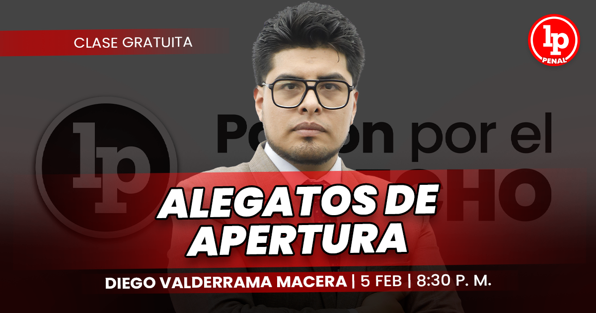Esta clase gratuita sobre alegatos de apertura por Diego Valderrama Macera, se desarrollará este jueves 05 de febrero de 2026 a las 08:30 p.m. Si desean recibir las diapositivas pueden llenar el siguiente formulario.