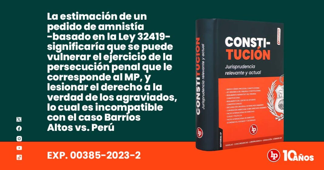 De lo expuesto, se ha producido con la vigencia de la Ley N° 32,419, un contenido normativo que entra en conflicto con una Ley superior —que es la Constitución Política del Estado en los artículos 159, inciso 5 (persecución penal) y 139, inciso 3 (tutela jurisdiccional efectiva), que como lo impone el artículo 51, se establece que la Constitución prevalece sobre toda norma legal; y que aplicado al caso en concreto en el supuesto de acogerse el pedido de amnistía, significaría que en un Estado Constitucional de Derecho se vulneraría el ejercicio de la persecución penal que le es competente en monopolio al Ministerio Público, así como obtener por el agraviado una respuesta contenida en una sentencia y su ejecutoriedad en el marco de un proceso penal, esto considerando la especial característica del caso que nos encontramos, aunado al derecho a la verdad resuelto por la Corte Interamericana de Derechos Humanos en el caso Barrios Altos v. Perú del 2001, que señala que las leyes de amnistía es incompatible para hacer efectivo los derechos de los artículo 8 y 25 de la Convención Interamericana de Derechos Humanos.