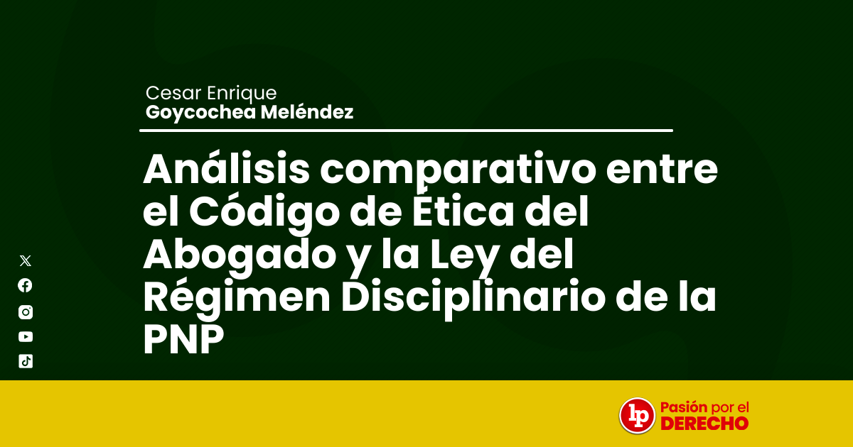 En el primer caso, dicho control se ejerce a través del Código de Ética del Abogado y su reglamento disciplinario; en el segundo, mediante la Ley 30714, Ley que regula el Régimen Disciplinario de la Policía Nacional del Perú, y su respectivo reglamento. Ambos sistemas responden a finalidades distintas, pero comparten la necesidad de asegurar comportamientos compatibles con la función social e institucional que desempeñan.