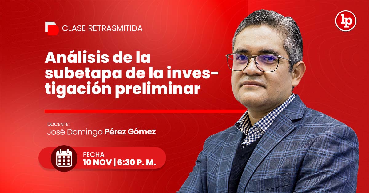 ¡Buenas nuevas! LP retransmitirá una clase gratuita sobre análisis de la subetapa de la investigación preliminar a cargo del especialista José Domingo Pérez Gómez, a través de la plataforma de Facebook y YouTube.