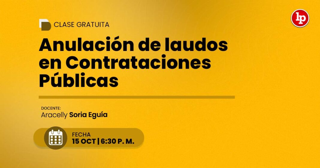 ¡Buenas nuevas! LP transmitirá una clase gratuita en vivo sobre anulación de laudos en contrataciones públicas. La clase estará a cargo de la docente Aracelly Soria Eguía.