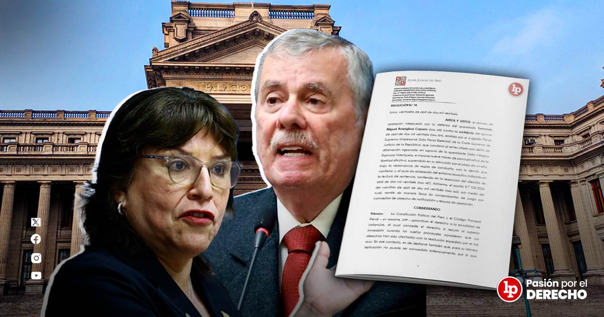 El Poder Judicial resolvió conceder el recurso de apelación interpuesto por Fernando Rospigliosi contra la sentencia que lo condenó por difamación agravada en agravio de Delia Espinoza. La decisión dispone que el expediente sea elevado a la Sala Penal Permanente de la Corte Suprema para que revise el caso, luego de verificar que el recurso cumplía con los requisitos legales establecidos.