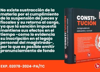 ![No existe sustracción de la materia por el cumplimiento de la suspensión de jueces y fiscales y su retorno al cargo, ya que la sanción impuesta mantiene sus efectos en el tiempo ―como lo evidencia su inscripción en el legajo personal del magistrado―, por lo que es posible emitir pronunciamiento de fondo [Exp. 02078-2024-PA/TC, ff. jj. 2-3]](https://img.lpderecho.pe/wp-content/uploads/2025/10/SUSTRACCION-MATERIA-JUECES-FISCALES-LPDERECHO-324x235.jpg)