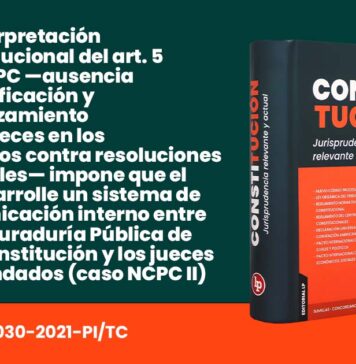 La interpretación constitucional del art. 5 del NCPC —ausencia de notificación y emplazamiento a los jueces en los procesos contra resoluciones judiciales— impone que...