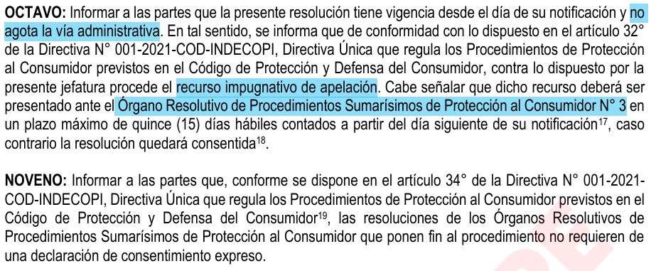 En ese sentido, el Indecopi declaró infundados ambos extremos de la denuncia; sin embargo, al haberse acreditado —vía allanamiento— que la empresa no brindó una respuesta idónea al reclamo, se le impuso una sanción de amonestación y el pago de costas del procedimiento.