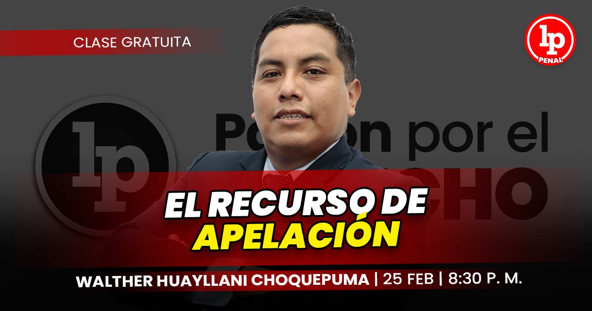 ¡Buenas nuevas! LP transmitirá una clase gratuita sobre el recurso de apelación cargo del especialista Walther Huayllani Choquepuma, a través de la plataforma de YouTube.