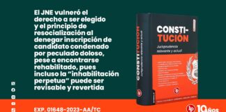 ![El JNE vulneró el derecho a ser elegido y el principio de resocialización al denegar la inscripción de candidato condenado por peculado doloso, pese a encontrarse rehabilitado, pues incluso la “inhabilitación perpetua” puede ser revisable y revertida por lo que dicha restricción no resulta razonable [Exp. 01648-2023-AA/TC, ff. jj. 16-22]](https://img.lpderecho.pe/wp-content/uploads/2025/11/JNE-RESOCIALIZACION-CANDIDATO-CONDENADO-LPDERECHO-324x160.jpg)