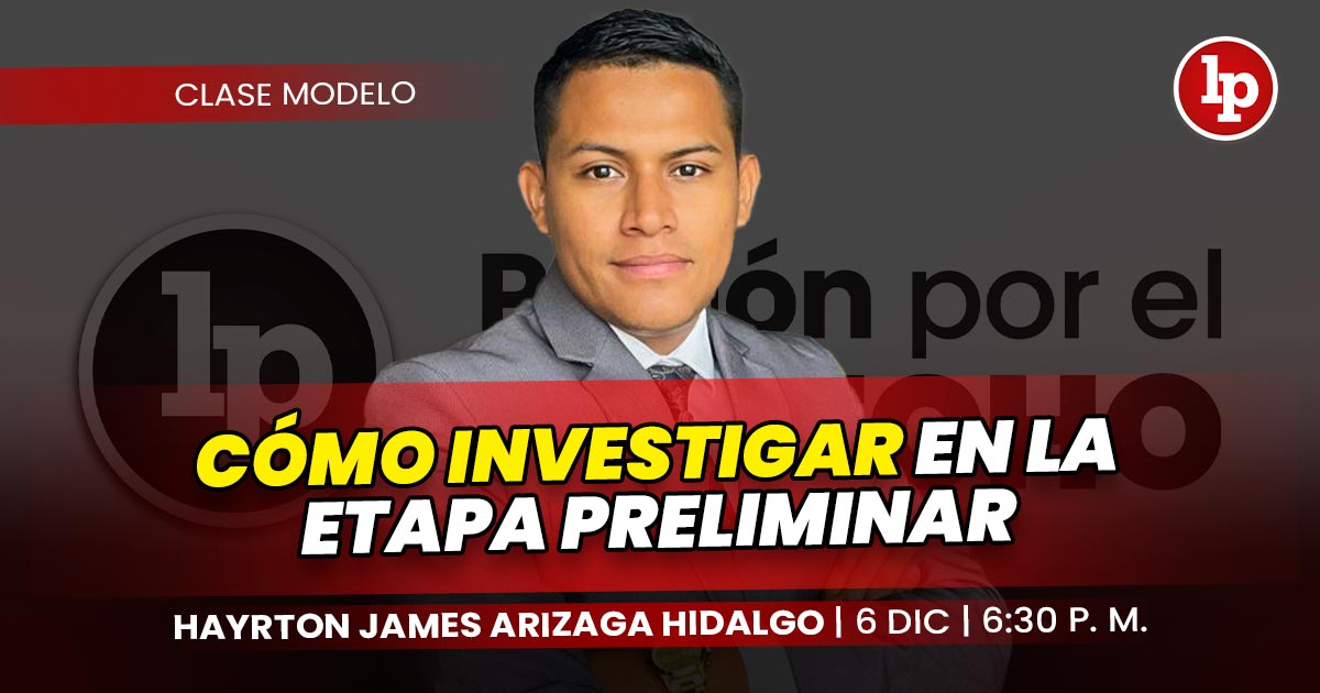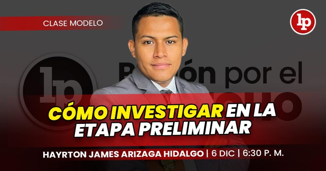 ¡Buenas nuevas! LP transmitirá una clase gratuita sobre cómo investigar en la etapa preliminar, a cargo del especialista Hayrton James Arizaga Hidalgo, a través de la plataforma de Facebook y YouTube.