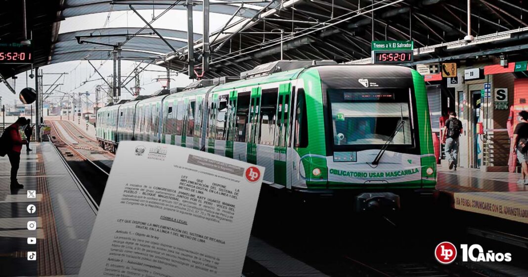 La congresista Jhakeline Katy Ugarte Mamani, integrante del grupo parlamentario Juntos por el Perú – Voces del Pueblo – Bloque Magisterial, presentó un proyecto de ley que dispone la implementación del sistema de recarga digital en la Línea 1 del Metro de Lima. La propuesta buscaría garantizar un servicio moderno y seguro para los usuarios del transporte ferroviario urbano.