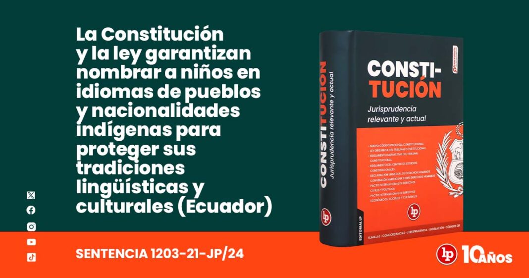 Fundamento destacado: 39. En esta línea, otorgar un nombre a un niño o niña, en idiomas de los pueblos y nacionalidades indígenas, está garantizado por la Constitución y la Ley con la finalidad de proteger las tradiciones lingüísticas y culturales propias de las comunidades, pueblos y nacionalidades indígenas y con ello también, reafirmar al Estado ecuatoriano como un Estado intercultural y plurinacional.