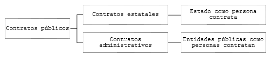 Stricto sensu, el contrato administrativo es el acuerdo voluntario entre una entidad pública y un particular para que este la provea de bienes, servicios y obras; sin embargo, no son los únicos acuerdos voluntarios donde una de las partes siempre es una entidad pública, por lo que se habla, in genere, de los contratos de la Administración Pública. Dentro de estos contratos podemos encontrar a los siguiente: