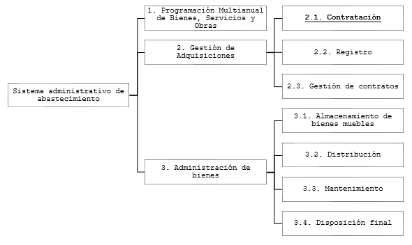Como se observa, la contratación administrativa es un subsistema dentro del sistema nacional de abastecimiento que implica las reglas y procedimientos para seleccionar los proveedores para la contratación de bienes, servicios y obras. El siguiente cuadro nos permitirá establecer qué responde el sistema de abastecimiento y el proceso de contratación administrativa.