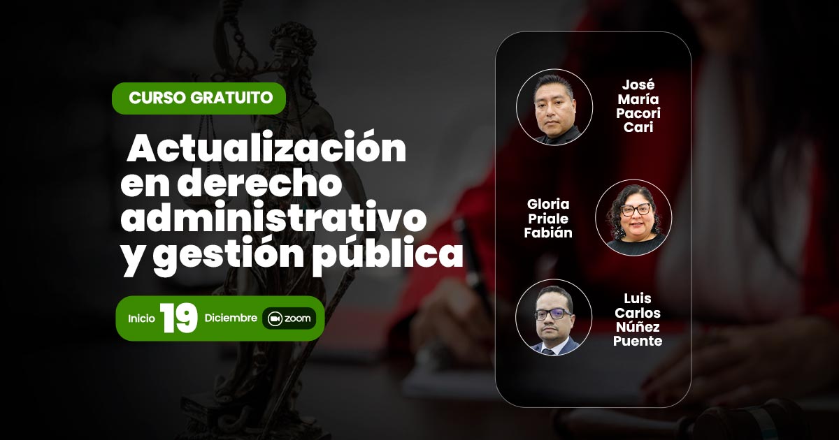 ¡Buenas noticias! LP Pasión por el Derecho, el portal jurídico más leído del Perú, presenta el Curso gratuito de actualización en derecho administrativo y gestión pública, de acceso gratuito, a cargo de destacados especialistas. Este curso de capacitación está pensado para quienes desean fortalecer sus conocimientos y avanzar en su formación jurídica en materia de derecho administrativo, procedimiento sancionador y gestión pública.