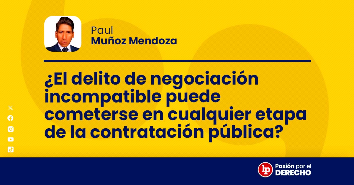 Este artículo analiza el momento en que puede cometerse el delito de negociación incompatible. Así, verificaremos si este puede cometerse en cualquier etapa de la contratación pública y, en ese sentido, no se realizará un estudio de todos los elementos del mencionado delito.