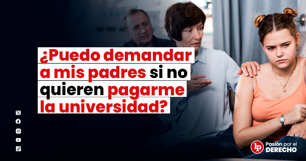 Sí se puede demandar a los padres. El abogado Del Aguila explicó que es posible llevarlos a juicio si se negasen a pagar los estudios en la universidad porque dicha responsabilidad está amparada en el Código Civil.