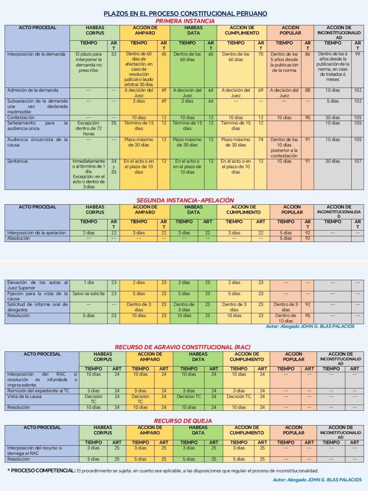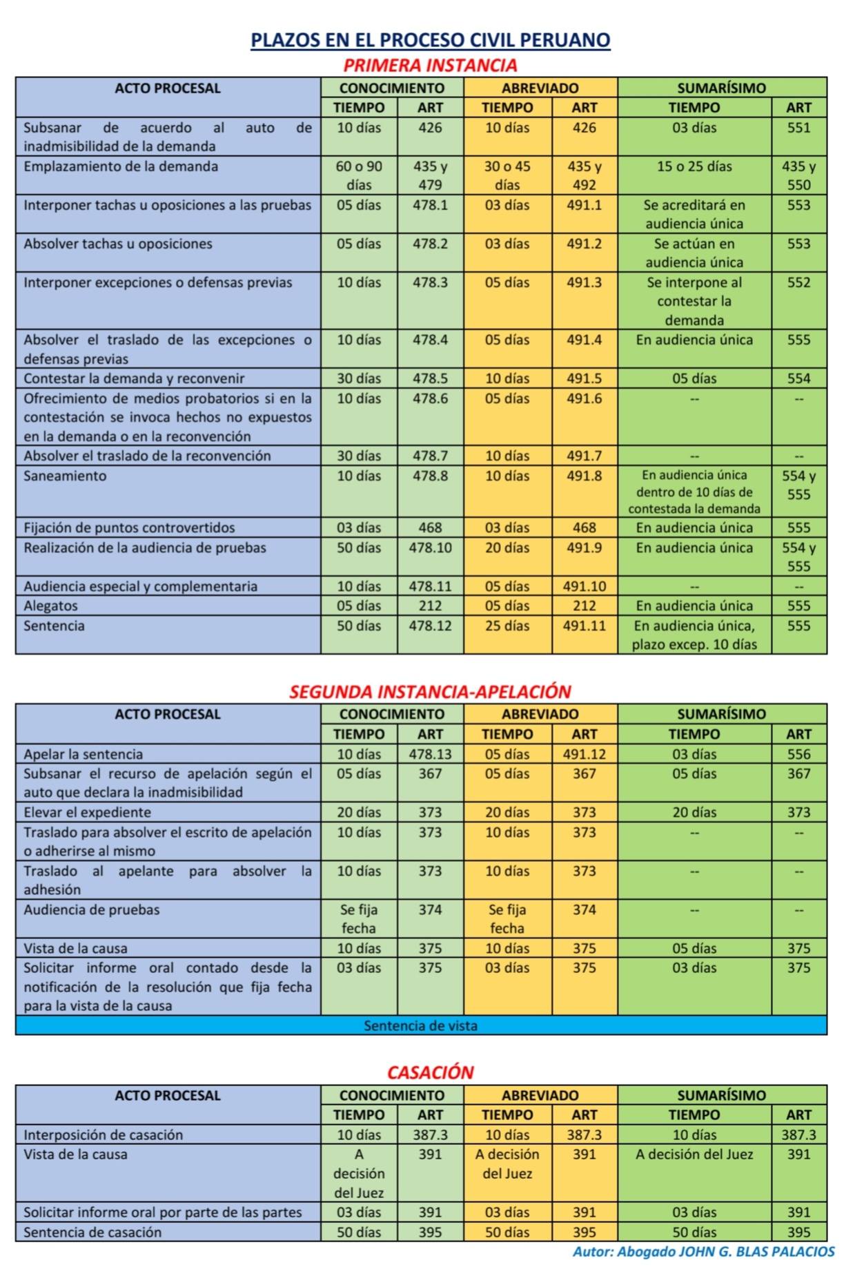 Compartimos el Manual de plazos en el proceso judicial peruano elaborado por el abogado John G. Blas Palacios Abogado.