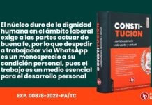 ![El núcleo duro de la dignidad humana en el ámbito laboral exige a las partes actuar de buena fe, por lo que despedir a trabajador vía WhatsApp es un menosprecio a su condición personal, pues el trabajo es un medio esencial para el desarrollo personal [Exp. 00878-2022-PA/TC, f. j. 15]](https://img.lpderecho.pe/wp-content/uploads/2026/01/BANNER-ARTICULO-CONSTITUCIONAL-6-218x150.jpg)