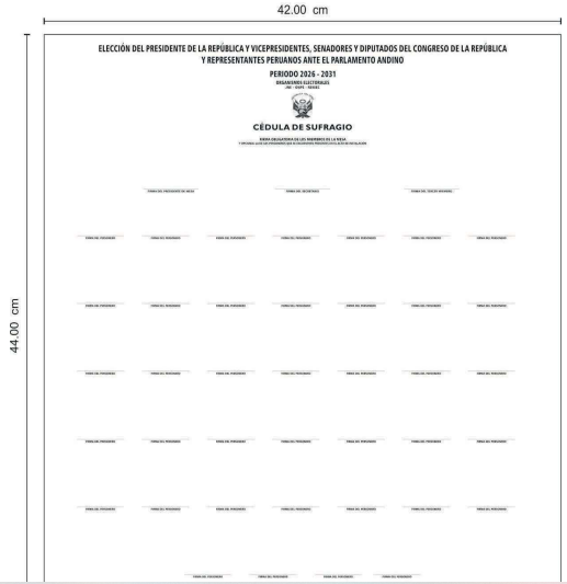 ESPECIFICACIONES TÉCNICAS DEL MODELO DEFINITIVO DE LA CÉDULA DE SUFRAGIO PARA LA ELECCIÓN DEL PRESIDENTE DE LA REPÚBLICA Y VICEPRESIDENTES, SENADORES Y DIPUTADOS DEL CONGRESO DE LA REPÚBLICA Y REPRESENTANTES PERUANOS ANTE EL PARLAMENTO ANDINO 2026