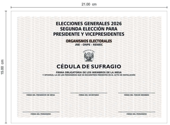 La Oficina Nacional de Procesos Electorales (ONPE) aprobó los modelos definitivos y las especificaciones técnicas de las cédulas de sufragio que se utilizarán en las elecciones generales 2026 y en una eventual Segunda Elección Presidencial, mediante la Resolución Jefatural 000008-2026-JN/ONPE.