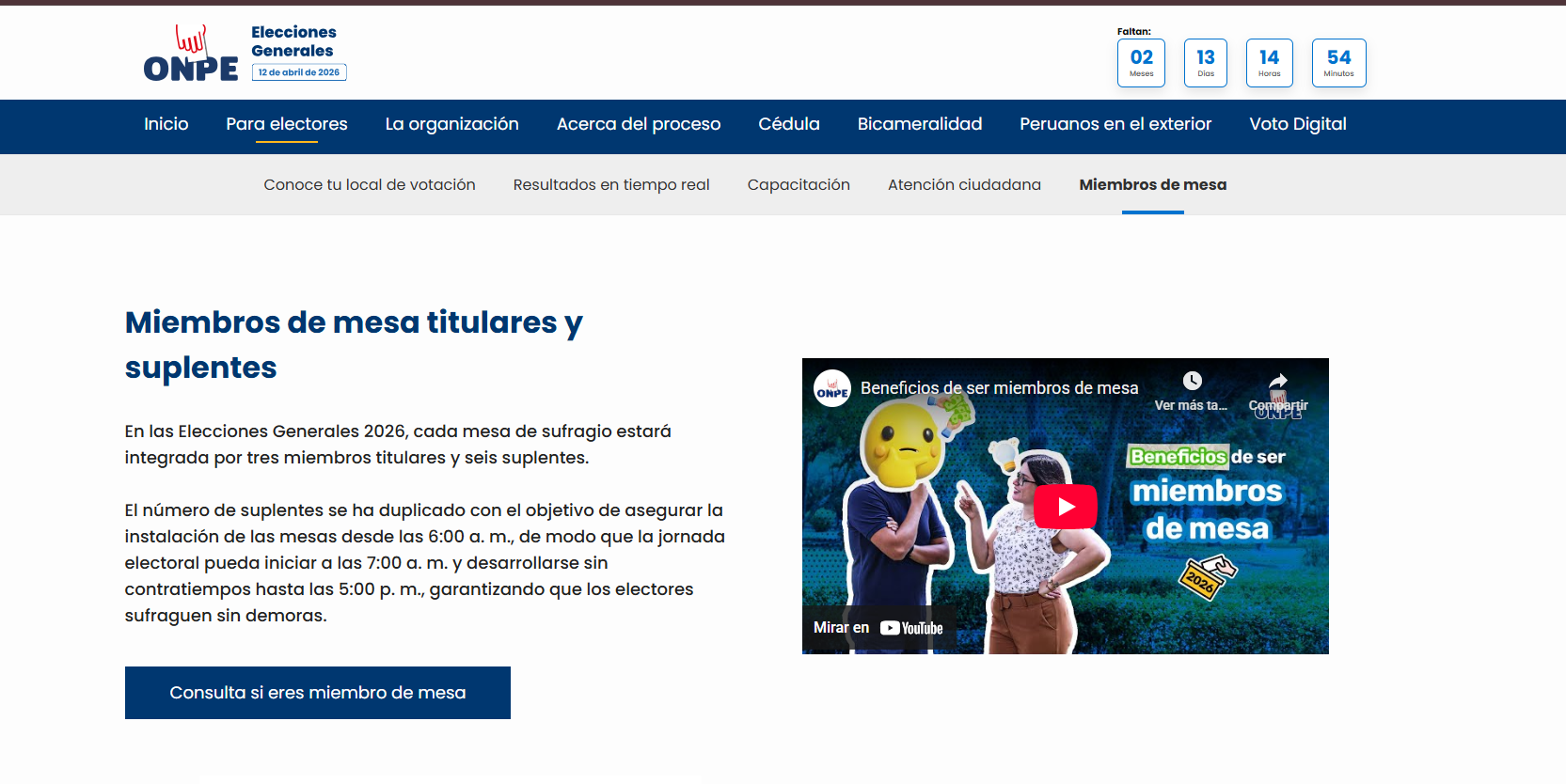 De acuerdo con información difundida por RPP Noticias, la ONPE incorporó este año modificaciones en el mecanismo de selección con el objetivo de garantizar que las mesas se instalen puntualmente desde las 6:00 de la mañana. Entre los principales cambios figura la designación de tres miembros titulares y seis suplentes por mesa, duplicando el número de suplentes respecto a elecciones anteriores para evitar retrasos en la apertura de la votación.