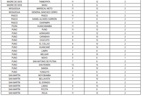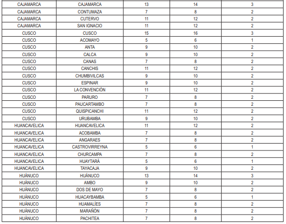 3.- ESTABLECER, para la aplicación de la cuota de representantes de comunidades nativas, campesinas y pueblos originarios en las Elecciones Municipales 2026, el número de candidatos equivalentes al porcentaje dispuesto por ley, en las provincias en las que existen, según el siguiente detalle: