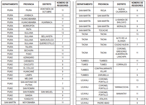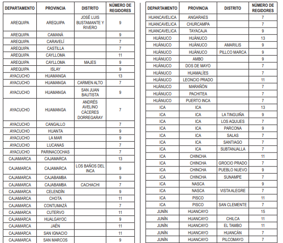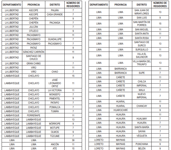 El Jurado Nacional de Elecciones (JNE) estableció el número de regidores provinciales