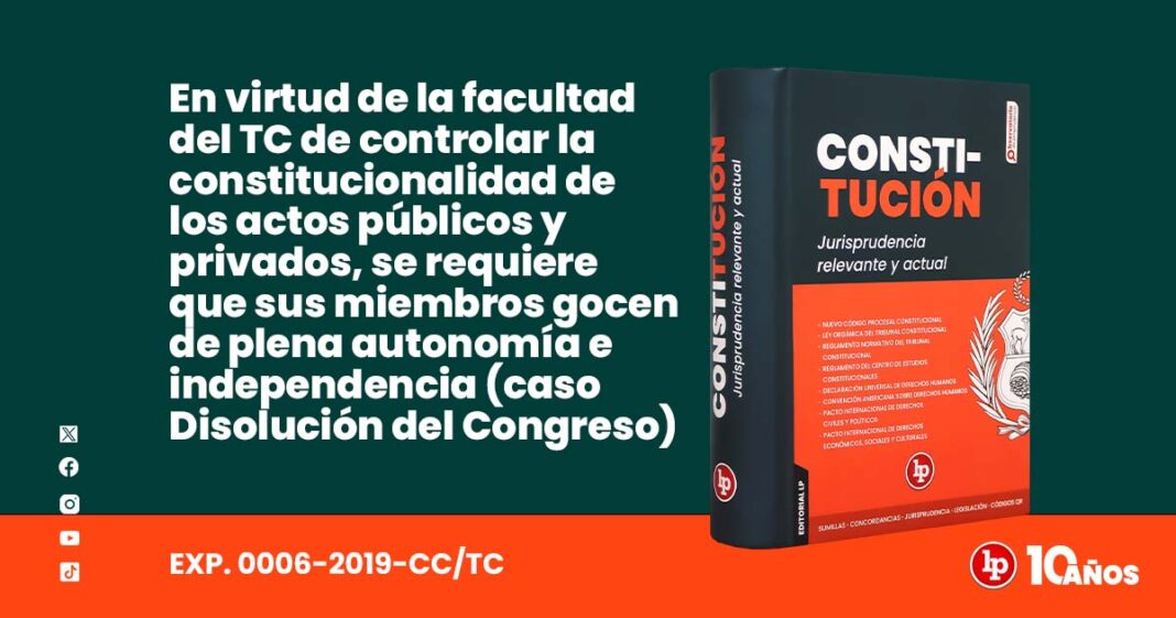 Fundamento destacado: 163. Por ello, en virtud de la crucial importancia que ostenta este Tribunal, y porque le ha sido asignada la labor de controlar la constitucionalidad de los actos tanto de los poderes públicos como de las actuaciones de los particulares, se requiere de que una total y real independencia y autonomía frente a cualquier manifestación de poder. En ese sentido ha interpretado la naturaleza de esta clase de tribunales la Corte Interamericana de Derechos Humanos al referir que, si bien es necesario garantizar la independencia de la judicatura en general, los Estados deben garantizar especialmente la independencia de los jueces constitucionales [cfr. Corte IDH. Caso Tribunal Constitucional vs. Perú. Sentencia de 31 de enero de 2001, párrafo 75].