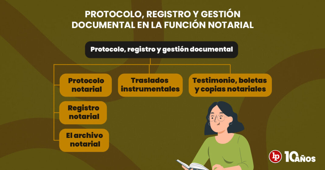 El estudio del protocolo, registro y archivo notarial forma parte del ítem 6 de derecho notarial del balotario para el acceso a la función notarial. Estos institutos conforman el eje documental de la fe pública, pues garantizan la autenticidad, conservación y eficacia de los actos instrumentados ante notario.
