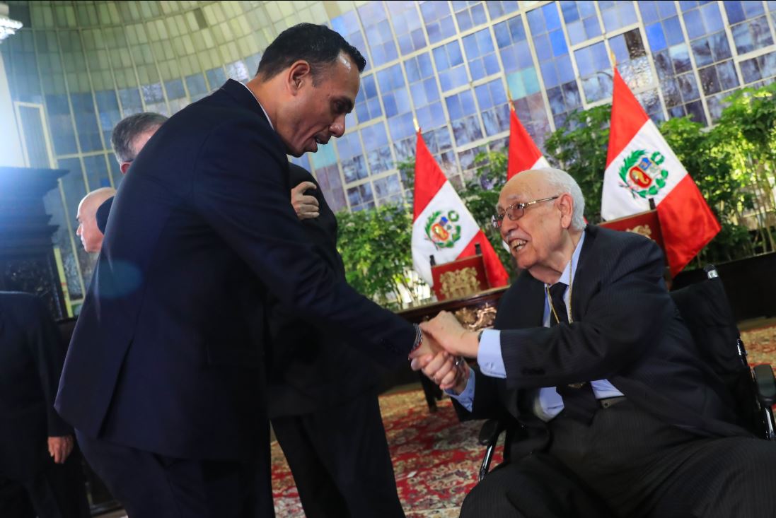 La condecoración, llevada a cabo en Palacio de Gobierno, fue recibida por el presidente del consejo directivo de la institución, Oswaldo Hundskopf Exebio.