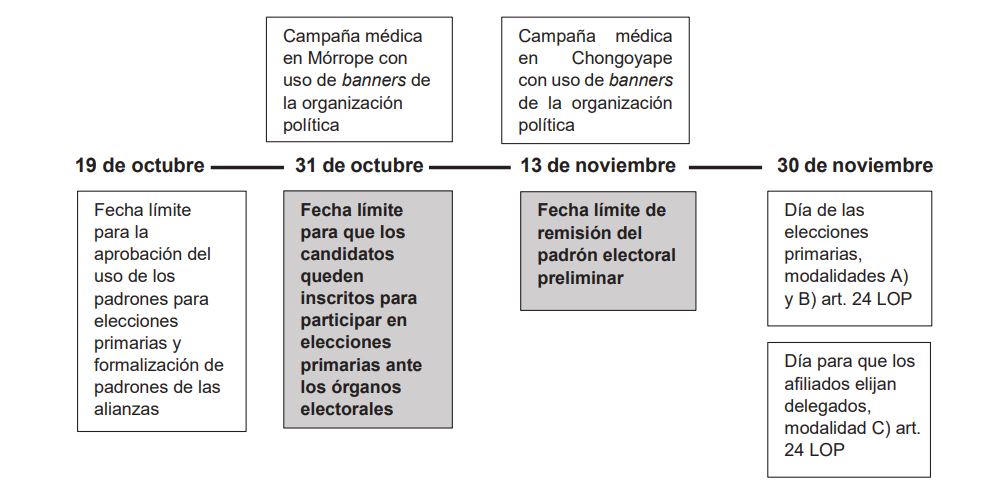 2.11. De la evaluación de los hechos, se advierte que las campañas médicas realizadas el 31 de octubre y 13 de noviembre de 2025 -a través de las cuales el señor recurrente realizó actos de propaganda electoral a favor de la organización política a la que pertenece- coinciden con fechas del cronograma electoral de las EG 2026. En ese sentido, su participación directa y protagónica en las actividades difundidas buscaba generar un beneficio electoral concreto para favorecer a una opción política4.
