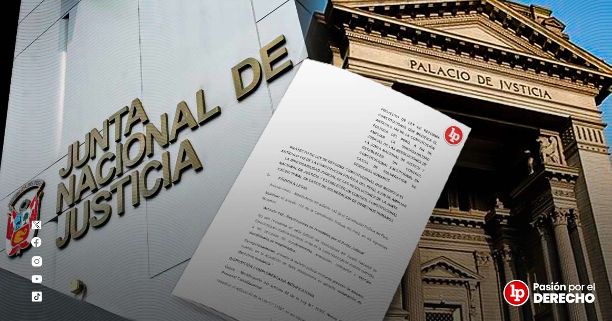La propuesta también incluye una disposición complementaria que modifica el artículo 42 del Nuevo Código Procesal Constitucional (Ley 31307), a fin de precisar la competencia judicial en los procesos de amparo vinculados a decisiones de la JNJ. En ese sentido, el proyecto establece que la Sala Constitucional y Social de la Corte Suprema será competente para resolver en segundo grado cuando la presunta afectación de derechos humanos se origine en «las resoluciones emitidas por la Junta Nacional de Justicia en el ejercicio de sus funciones de nombramiento, evaluación, ratificación o sanción disciplinaria».
