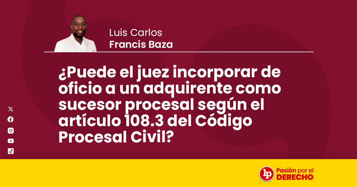 El artículo 108 del Código Procesal Civil regula la sucesión procesal en caso de transferencia del derecho litigioso. Sin embargo, su aplicación práctica ha generado interpretaciones que exceden el diseño legal, especialmente cuando se incorpora al proceso a un tercero adquirente sin su solicitud. El presente artículo expone los límites normativos del artículo 108.3 CPC, analiza un caso representativo y advierte los riesgos que esta interpretación produce en la seguridad jurídica y en la protección de la fe registral.