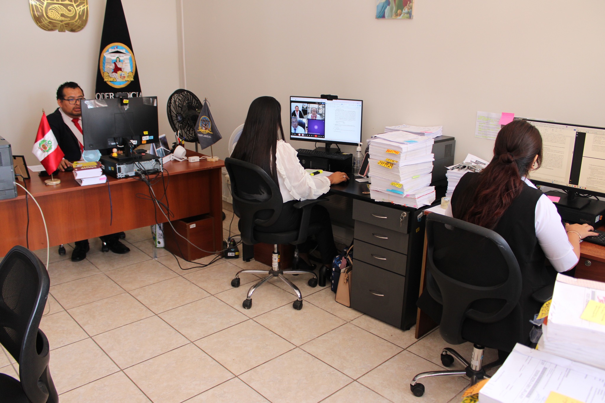 Así también debe señalarse con especial realce que esta maratón se realizó únicamente con personal de emergencia: la especialista judicial Annie Agapito Valencia y la asistente Frances Aliaga, y mediante el uso de enlaces virtuales a través de Google Meet, demostrando eficiencia organizacional y compromiso institucional aun en condiciones operativas limitadas.