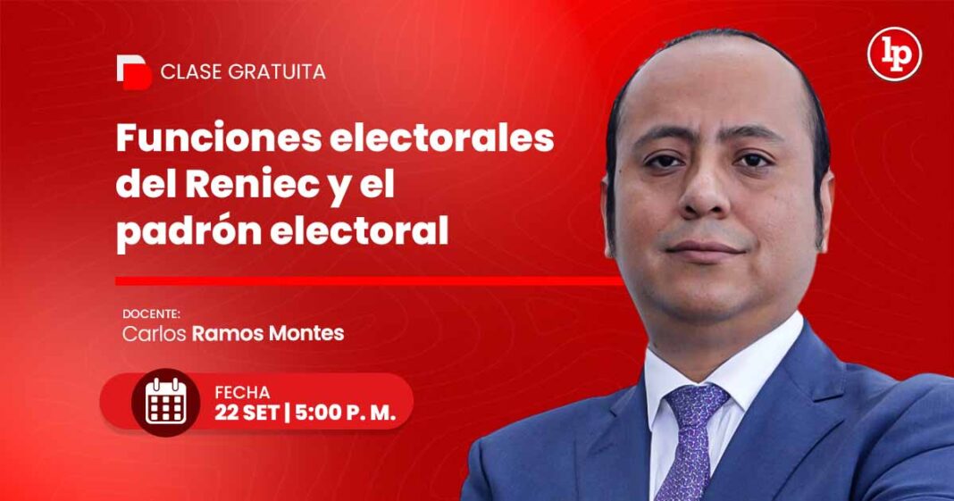 ¡Buenas nuevas! LP transmitirá una clase gratuita en vivo sobre las funciones electorales del Reniec y el padrón electoral, que estará a cargo del abogado especialista en derecho electoral, el profesor Carlos Ramos Montes, a través de la plataforma de Facebook y YouTube.