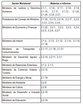 CUARTA. Es deber del titular de cada sector informar a la Comisión de Constitución y Reglamento del Congreso de la República por escrito y dentro del plazo de sesenta días calendario contados desde la publicación de los decretos legislativos correspondientes, bajo responsabilidad, los avances del estado de implementación de las medidas legislativas que se emitan al amparo de la presente ley, de acuerdo con el siguiente detalle: