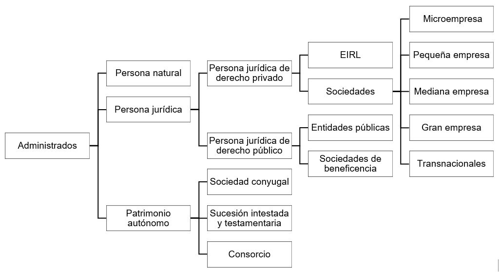Si bien no se indica expresamente como administrados, también se incluirán a los patrimonios autónomos, verbi gratia, sociedad conyugal, sucesión intestada o testamentaria o consorcio, entre otros. De lo indicado podemos establecer quiénes se consideran administrados