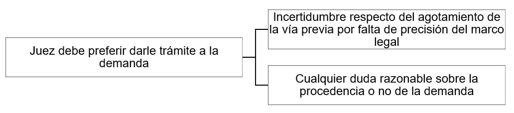 “3. Principio de favorecimiento del proceso. El Juez no podrá rechazar liminarmente la demanda en aquellos casos en los que por falta de precisión del marco legal exista incertidumbre respecto del agotamiento de la vía previa. Asimismo, en caso de que el Juez tenga cualquier otra duda razonable sobre la procedencia o no de la demanda, deberá preferir darle trámite a la misma”.