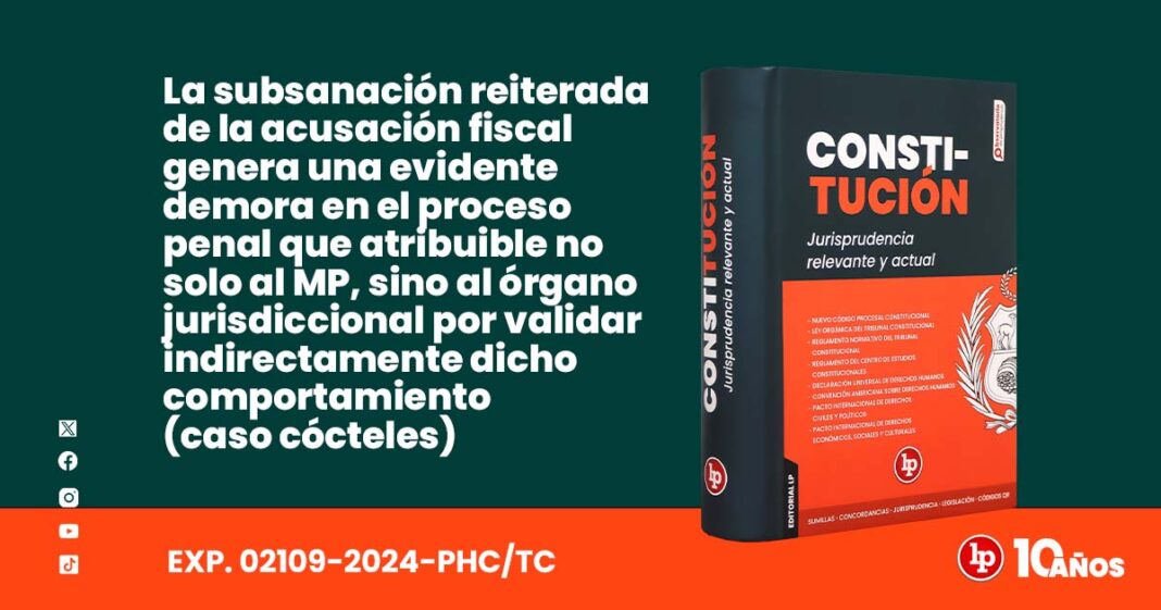 91. Así las cosas, queda claro que subsanar la acusación tantas veces ha generado una evidente demora en el proceso penal la misma que termina siendo no solo responsabilidad del Ministerio Público (por haber presentado una acusación defectuosa) sino del propio órgano jurisdiccional por validar indirectamente un comportamiento de dicha naturaleza.