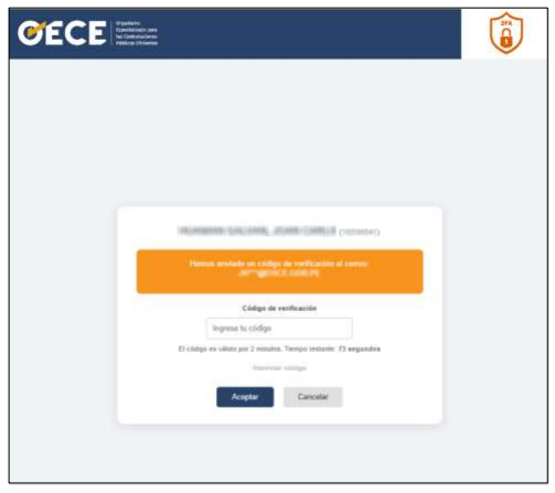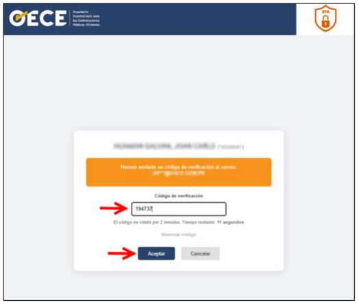 Digite el código de verificación en el campo correspondiente y pulse el botón “Aceptar”.