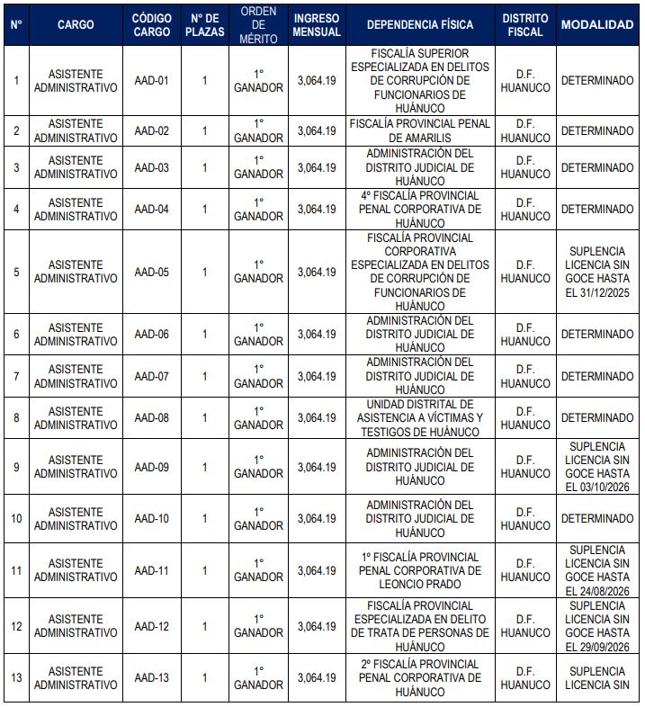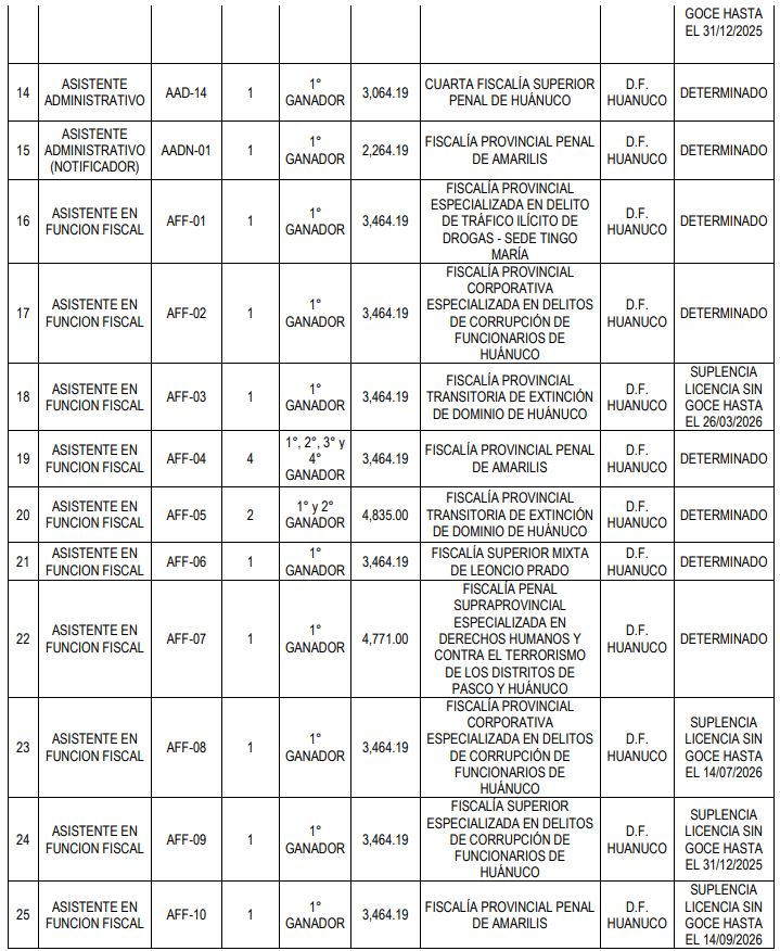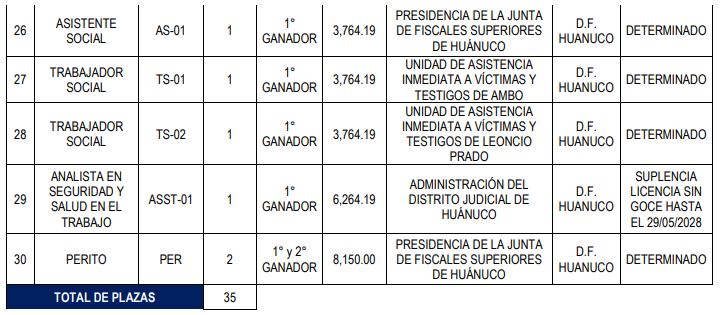 CONTRATACIÓN DE TREINTA Y CINCO (35) PLAZAS PARA EL DISTRITO FISCAL DE HUÁNUCO