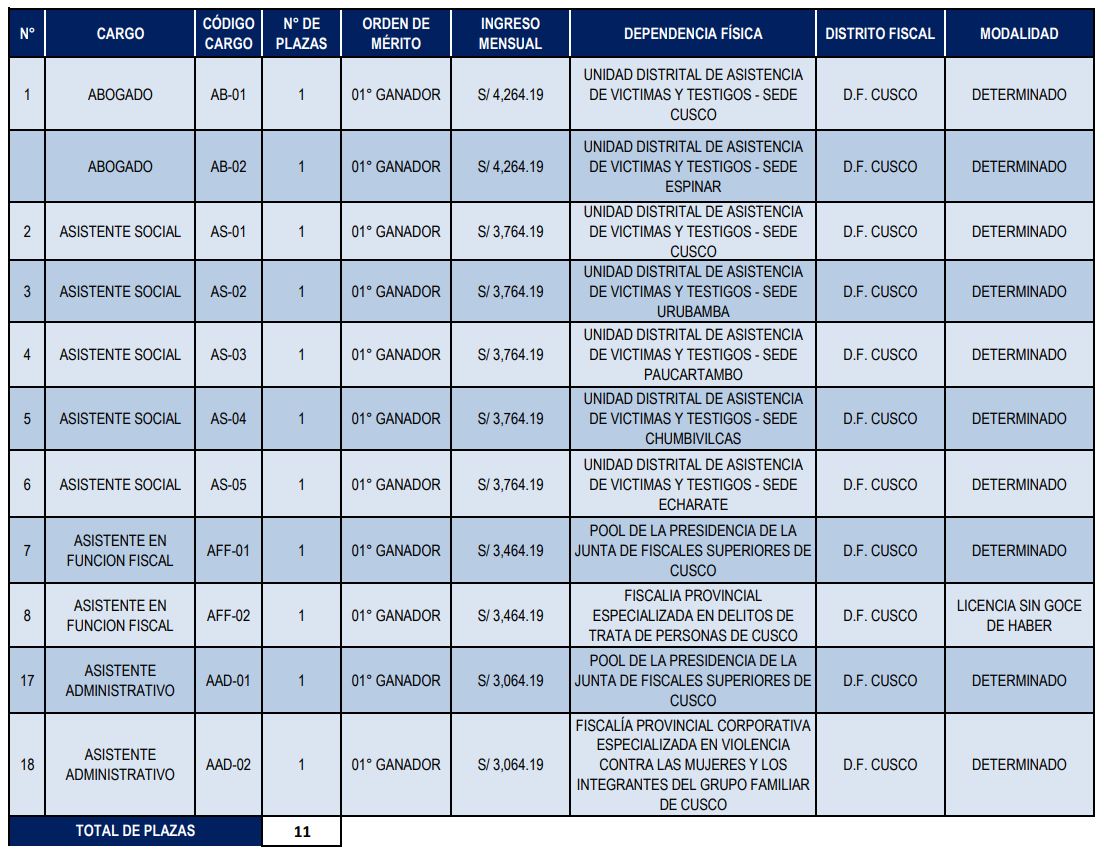 CONTRATACIÓN DE (11) PERSONAS PARA EL DISTRITO FISCAL DE CUSCO