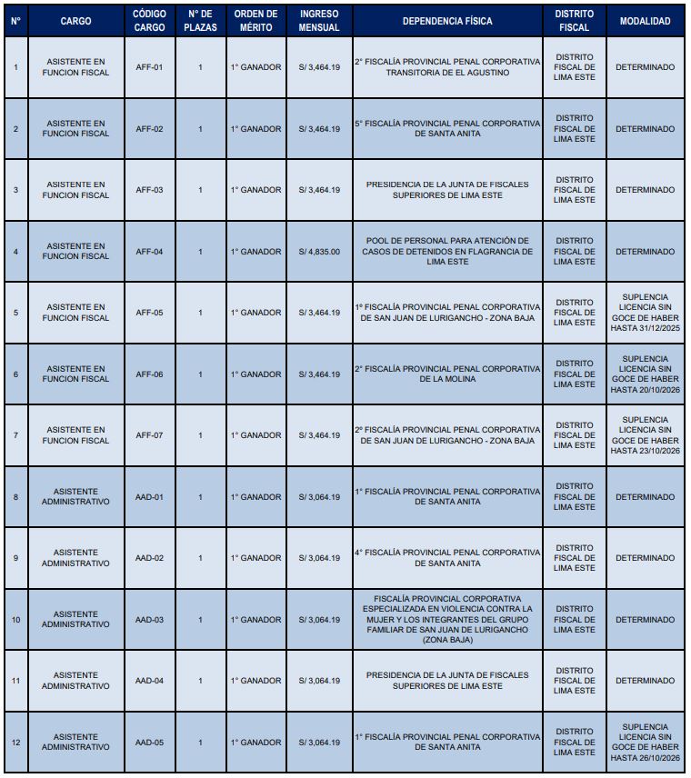 A continuación les dejamos la lista de las ofertas laborales disponibles con los enlaces respectivos de cada convocatoria, en cada una de ellas encontrarán las bases y el cronograma completo. Postula aquí