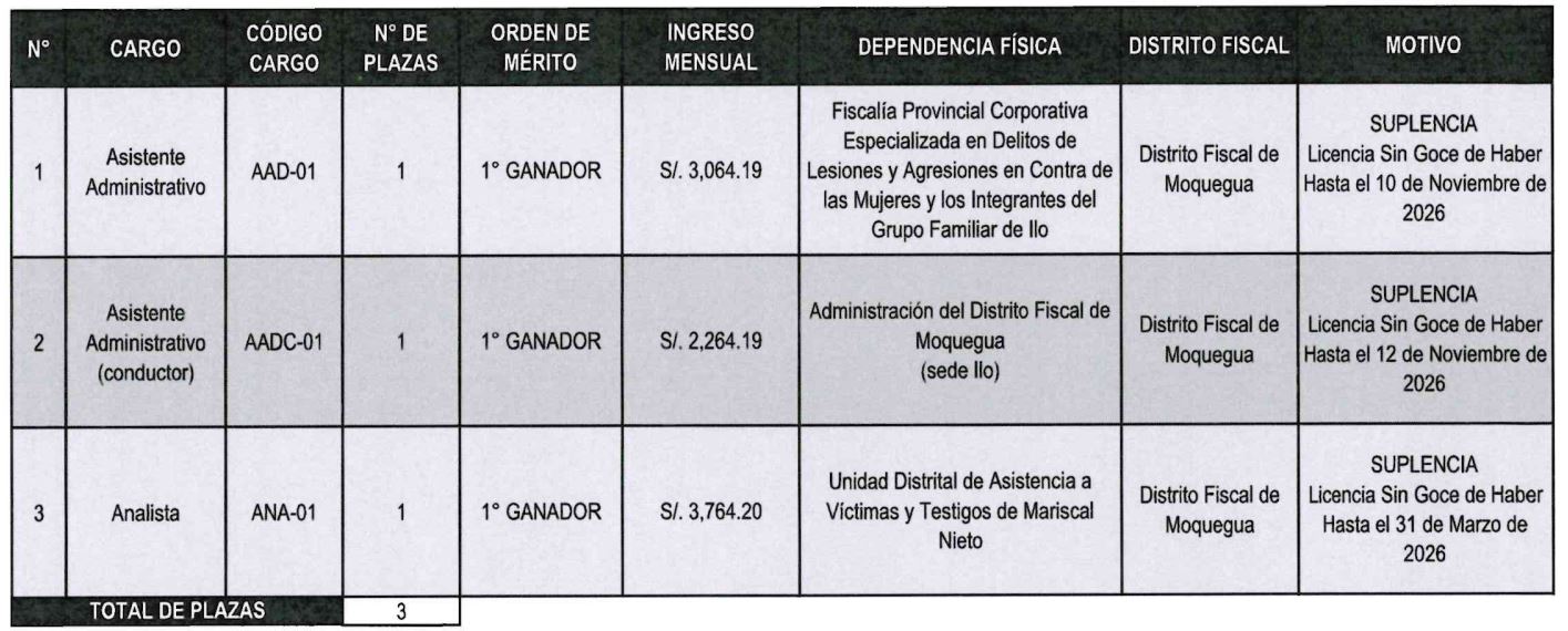 CONCURSO PÚBLICO DE MÉRITOS POR LA MODALIDAD DE SUPLENCIA PARA CUBRIR UNA (01) PLAZA DE ASISTENTE EN FUNCION FISCAL