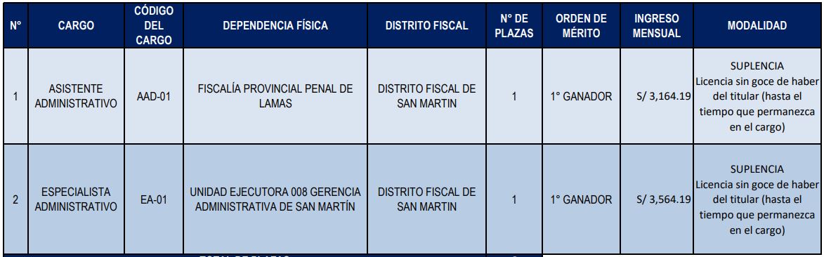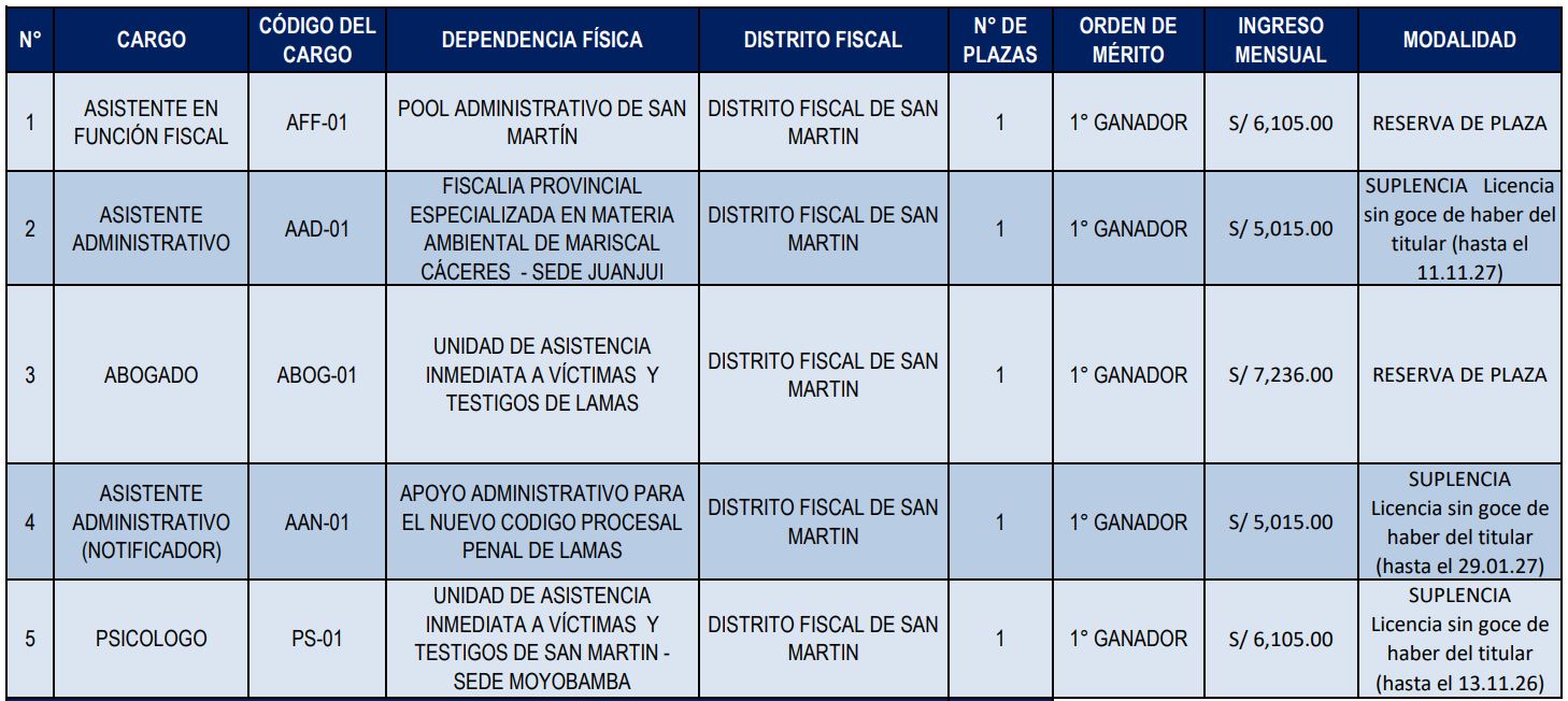 CONCURSO PÚBLICO DE MÉRITOS POR SUPLENCIA N° 001-2026 PROCESO DE SELECCIÓN DE PERSONAL BAJO EL DECRETO LEGISLATIVO N° 728 POR SUPLENCIA PARA CUBRIR CINCO (05) PLAZAS DEL DISTRITO FISCAL DE SAN MARTIN