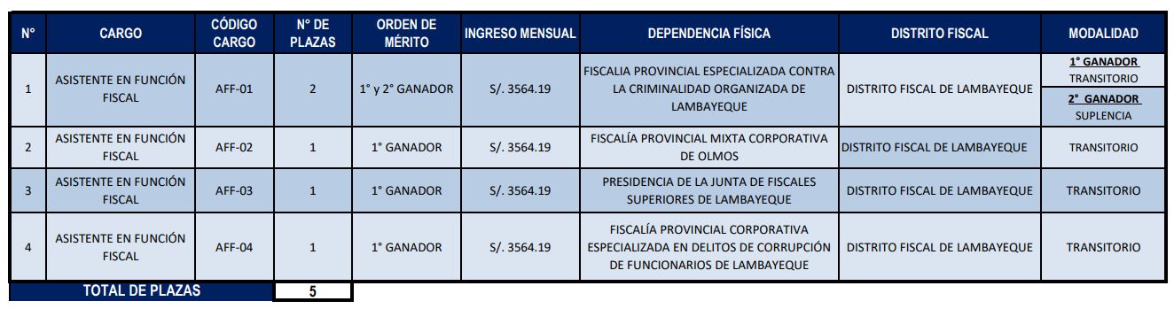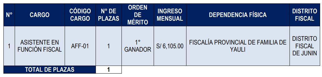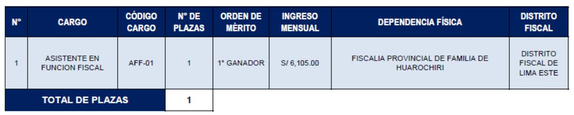 | AFF-01 | FISCALIA PROVINCIAL CORPORATIVA ESPECIALIZADA EN DELITOS DE CORRUPCION DE FUNCIONARIOS DE HUANCAVELICA | S/3564,19 | ASISTENTE EN FUNCIÓN FISCAL |