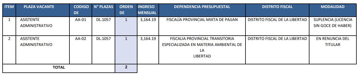 CONTRATACIÓN ADMINISTRATIVA DE SERVICIOS BAJO EL REGIMEN CAS D.L. 1057 DE DOS (02) PERSONAS PARA EL DISTRITO FISCAL DE LA LIBERTAD