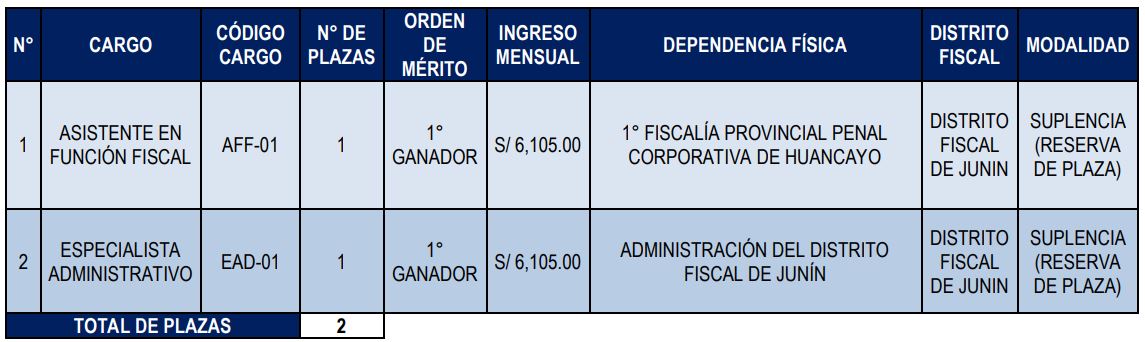 CONTRATACIÓN DE PERSONAL BAJO LOS ALCANCES DEL RÉGIMEN DEL DECRETO LEGISLATIVO N° 728 POR LA MODALIDAD DE SUPLENCIA PARA CUBRIR DOS (02) PLAZAS DEL DISTRITO FISCAL DE JUNIN