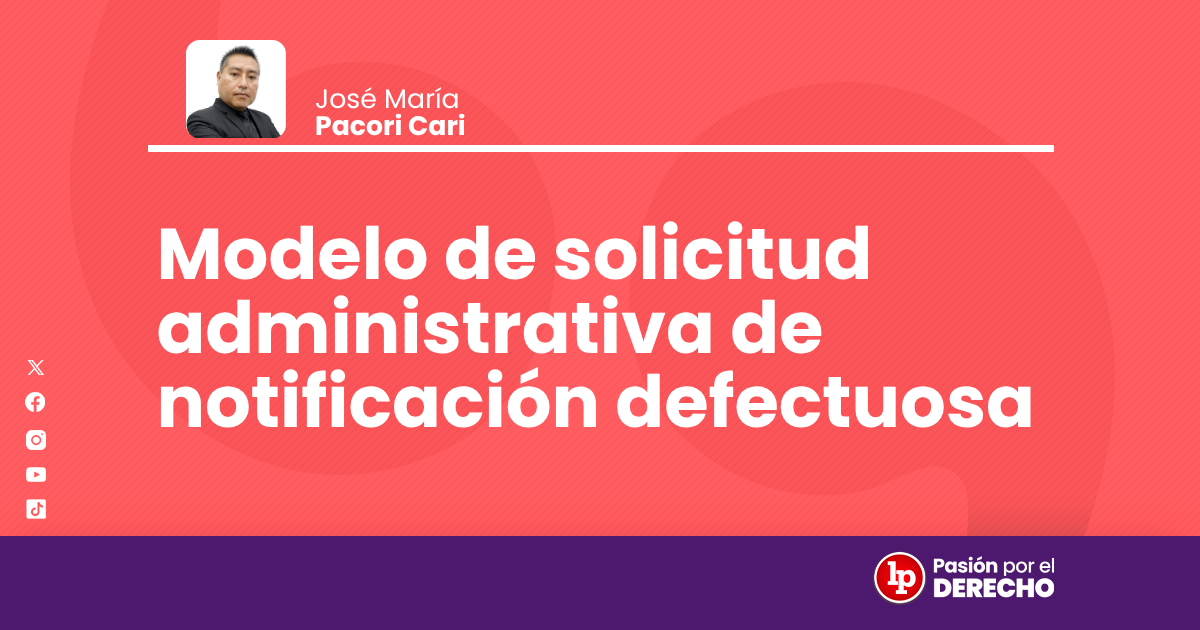 El acto administrativo es eficaz a partir de su notificación. En caso de que la notificación no cumpla con el contenido ni formalidades previstas en la ley, se puede solicitar a la autoridad administrativa que se declare defectuosa la notificación, disponiéndose que se rehaga la misma. A continuación, le mostramos el modelo de solicitud de notificación defectuosa de un acto administrativo (autor José María Pacori Cari).