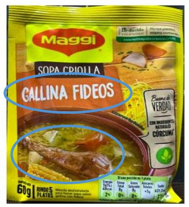 Aunque su empaque mostraba una pierna de gallina sumergida en caldo, junto a la frase “Sopa Criolla Gallina Fideos”, el producto de Maggi, no contenía carne de gallina. Según el Indecopi, ese mensaje visual y verbal fue suficiente para inducir a error al consumidor, ya que el ingrediente no figuraba ni siquiera en mínima proporción.