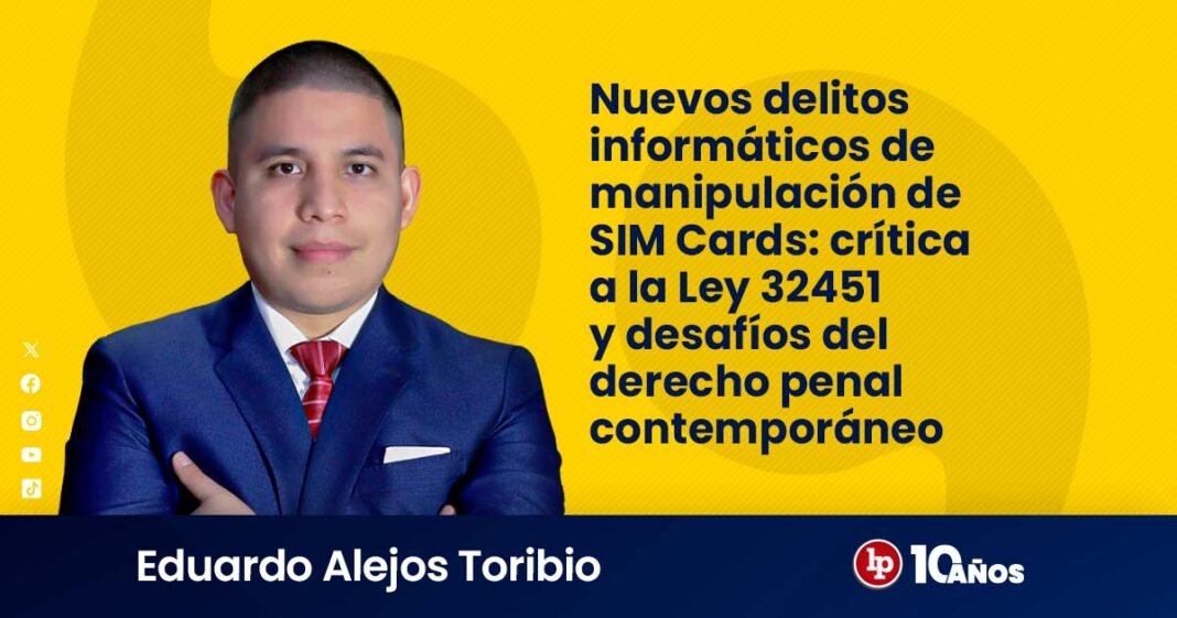 En el plano dogmático, los nuevos tipos penales introducidos por la Ley No.32451 plantean retos interpretativos de gran relevancia para el Derecho penal sustantivo, pues ponen en tensión principios fundamentales como la legalidad, culpabilidad, proporcionalidad y subsidiariedad (ultima ratio). Entre las principales figuras incorporadas destacan la “activación ilegal de una SIM Card o línea móvil” sin el consentimiento del titular o mediante información falsa o “errónea”, con pena de cuatro a ocho años de prisión.
